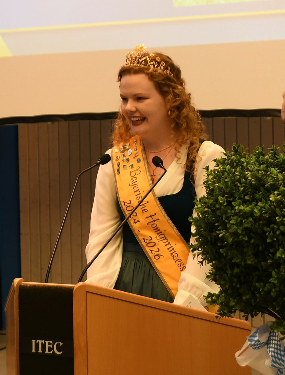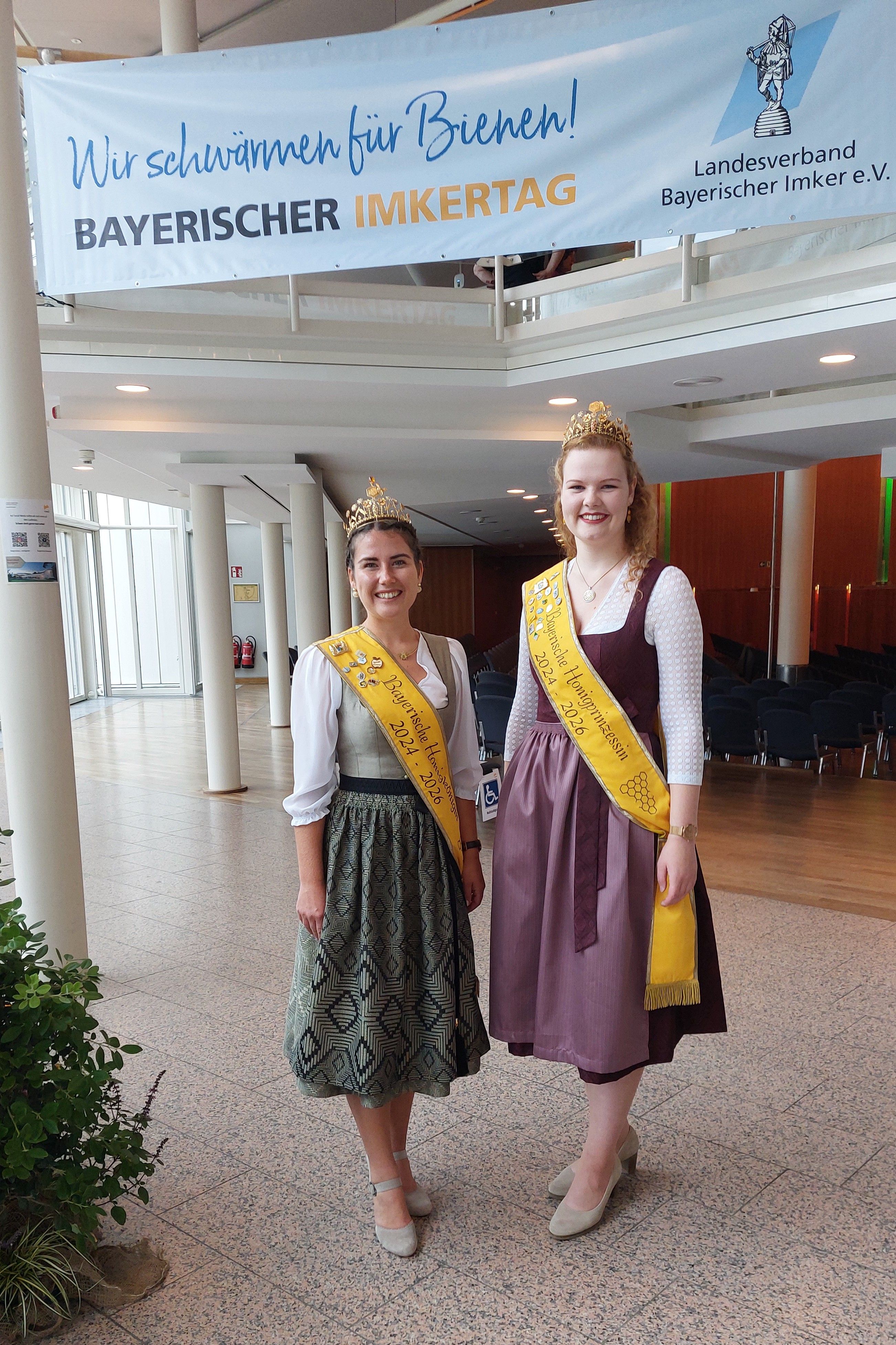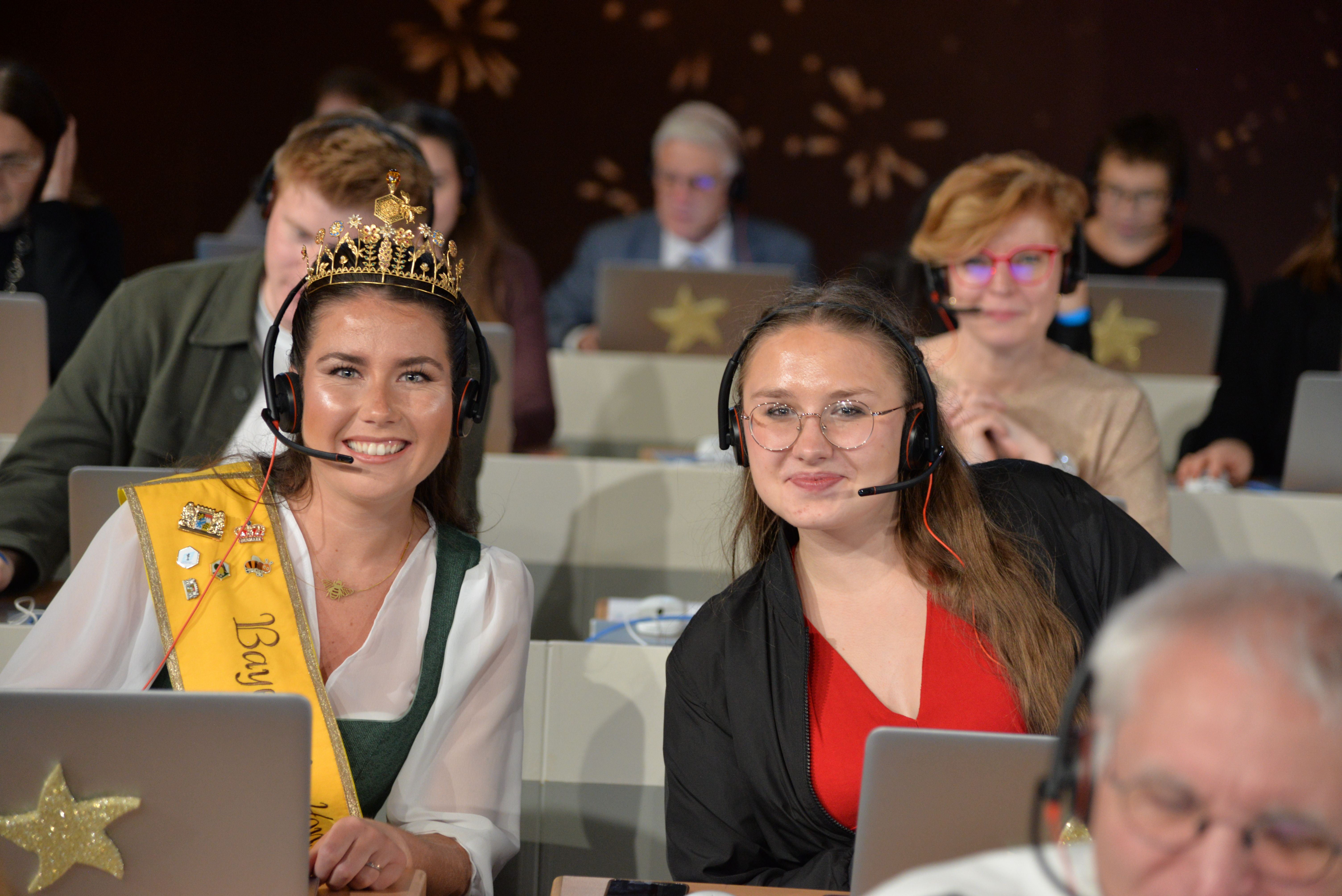 Ein ganz besonderes Highlight führte die Bayerische Honigkönigin Elena I. und die Bayerische Honigprinzessin Anja im Sommer 2025 nach Kopenhagen: Dort fand der Weltimkerkongress Apimondia statt – die weltweit größte Veranstaltung rund um Bienen, Imkerei und Honig. Tausende Teilnehmerinnen und Teilnehmer aus allen Teilen der Welt kamen zusammen, um sich über neueste wissenschaftliche Erkenntnisse, innovative Projekte und die Bedeutung der Bienen für Natur und Gesellschaft auszutauschen. Die beiden Bayerischen Hoheiten vertraten den Deutschen Imkerbund (D.I.B.) am Messestand und waren dort ein wahrer Blickfang. Mit großem Fachwissen, Herzlichkeit und spürbarer Begeisterung standen sie den internationalen Gästen Rede und Antwort. Viele Besucherinnen und Besucher nutzten die Gelegenheit, sich über die bayerische Imkerei, die Honigtradition und die Arbeit des DIB zu informieren. Dabei entstanden nicht nur interessante Gespräche, sondern auch neue Kontakte über Ländergrenzen hinweg.