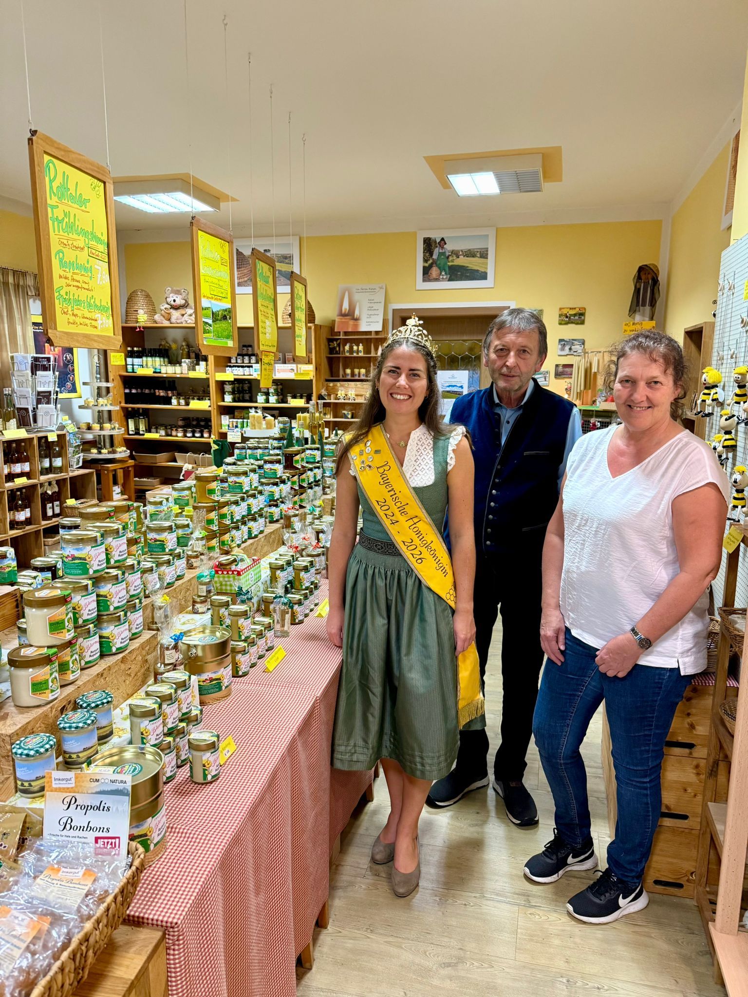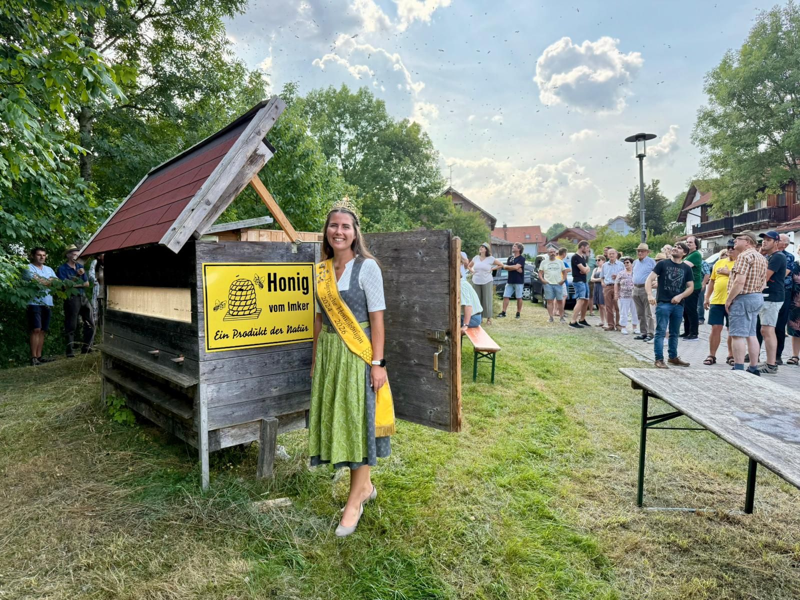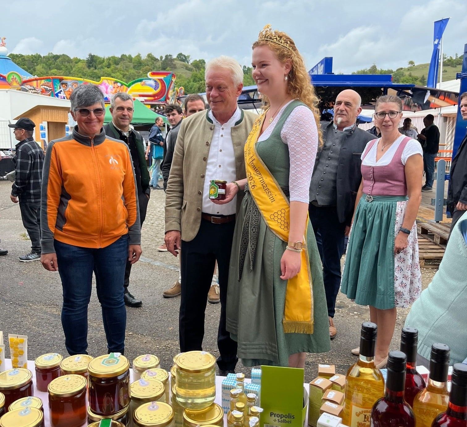 Am ersten Septemberwochenende führte der Weg der Bayerischen Honigkönigin Elena I. ins schöne Rottal. Im Mittelpunkt stand die feierliche Eröffnung der Rottaler Mostwochen im Rottaler Bienenhof in Bayerbach. Bereits vor Beginn der Veranstaltung hatte Elena die Gelegenheit, die Familie Biermeier zu besuchen und sich deren Honigladen sowie den Bienenhof näher anzusehen. Ein spannender Einblick in die regionale Imkerei, der den Tag besonders bereicherte. Bei der offiziellen Eröffnungsfeier der Mostwochen war die Honigkönigin in illustrer Gesellschaft: Gemeinsam mit der Most-, Kartoffel- und Erdbeerkönigin setzte sie ein starkes Zeichen für die Vielfalt der regionalen Produkte und die enge Verbindung von Landwirtschaft, Imkerei und Kulinarik.