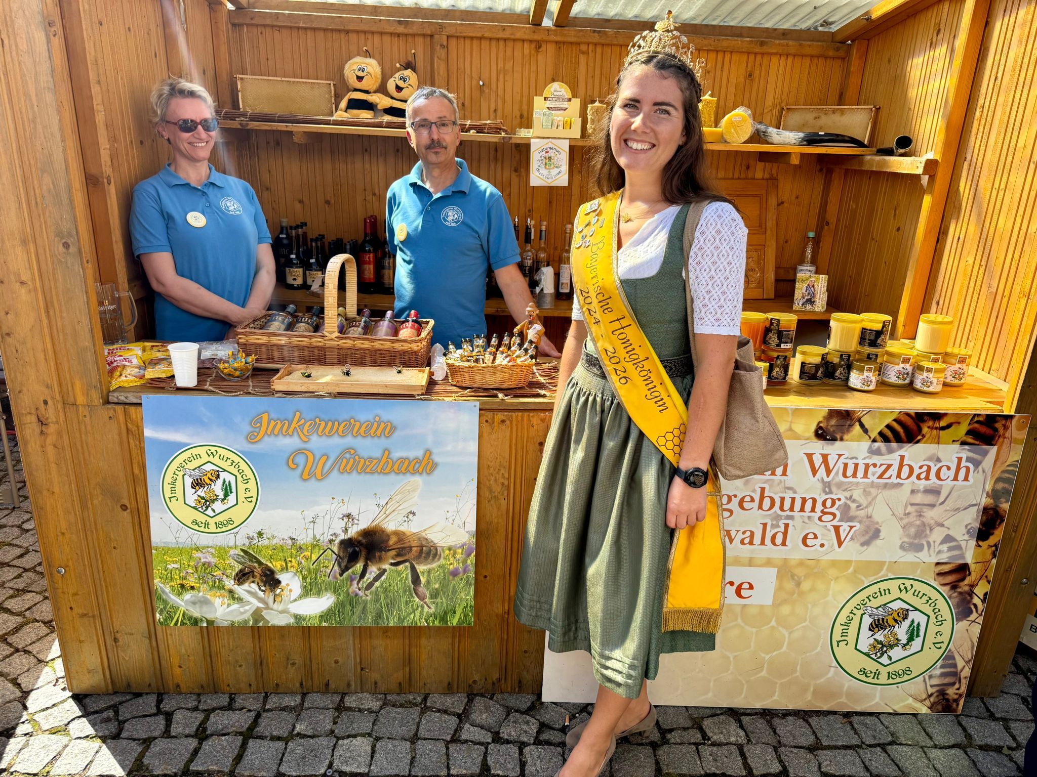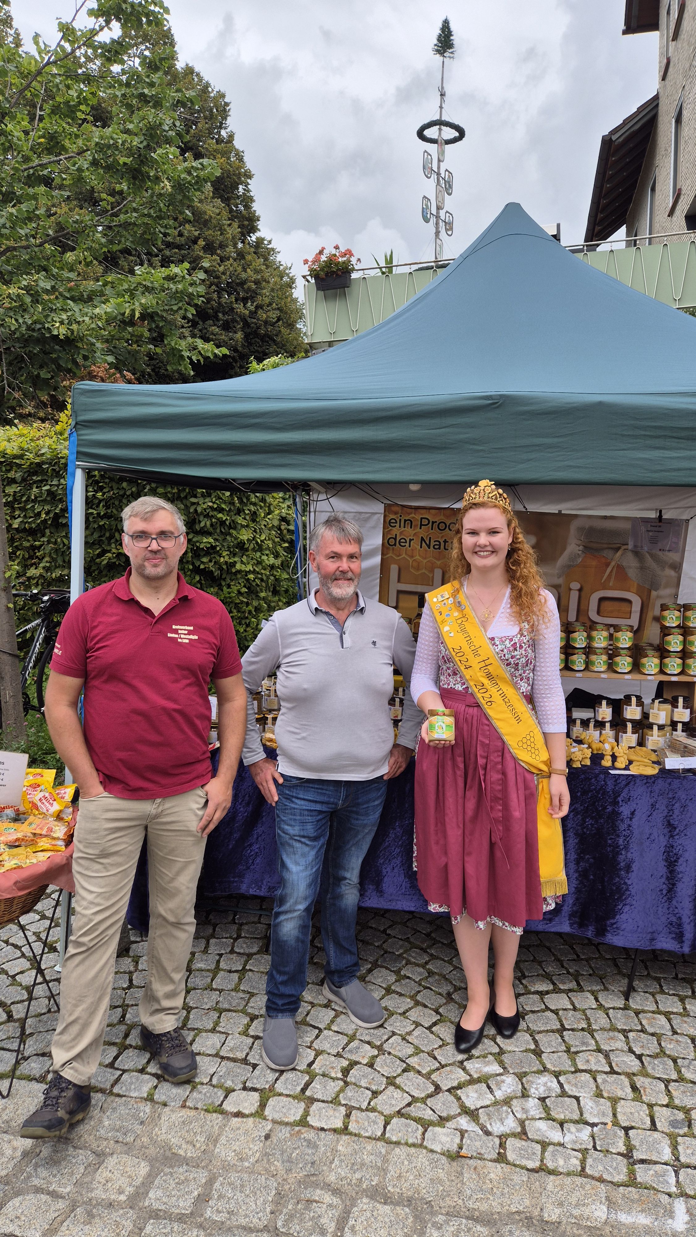 Ein besonderer Termin führte die Bayerische Honigkönigin Elena I. im Juli zur Landesgartenschau in Furth im Wald. Anlässlich des Tags der Deutschen Imkerei war sie am Stand der Imkerinnen und Imker im Einsatz. Der Imkerpavillon war mit viel Liebe zum Detail gestaltet: Informative Schautafeln, vielfältiges Infomaterial, dekorative Elemente und sogar lebende Bienenvölker sorgten für großes Interesse bei den Besucherinnen und Besuchern. Der Stand bot zahlreiche Möglichkeiten, mehr über die Arbeit der Imker, die Lebensweise der Bienen und die Bedeutung von Honig als Naturprodukt zu erfahren. Elena I. unterstützte die Imker vor Ort und bot Honigbrötchen zur Verkostung an – eine schöne Gelegenheit, mit den Gästen ins Gespräch zu kommen und nebenbei über Herkunft, Vielfalt und Qualität des Honigs zu informieren. Die Besucherinnen und Besucher nahmen das Angebot begeistert an und zeigten großes Interesse an den Erklärungen rund um die. Die Präsenz der Imkerei in diesem Rahmen unterstrich die enge Verbindung von Naturschutz, regionaler Landwirtschaft und Verbraucheraufklärung. Die Landesgartenschau bot mit ihrer vielfältigen Besucherstruktur den idealen Rahmen, um einem breiten Publikum die Bedeutung der Imkerei und den Wert heimischer Bienenprodukte näherzubringen.