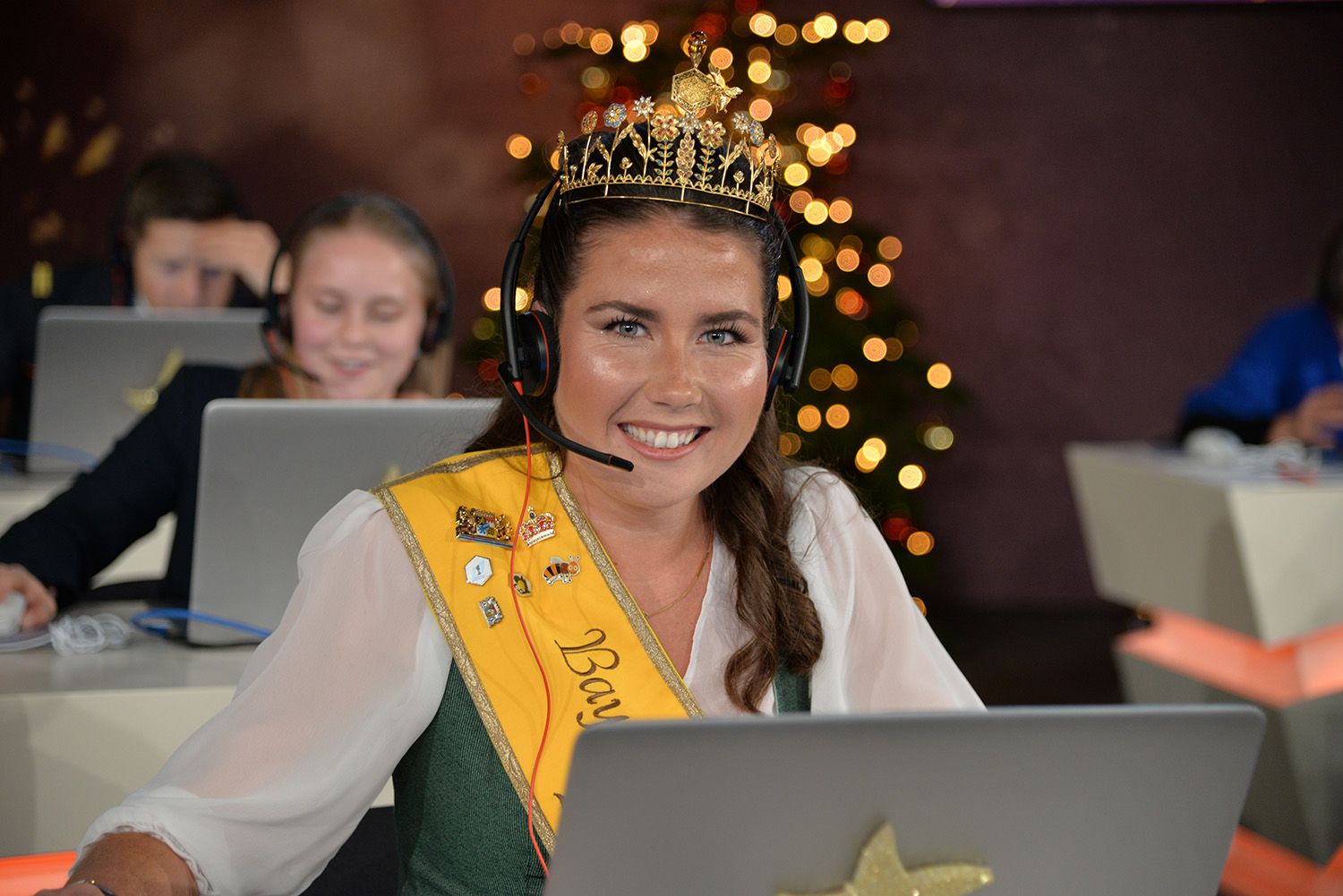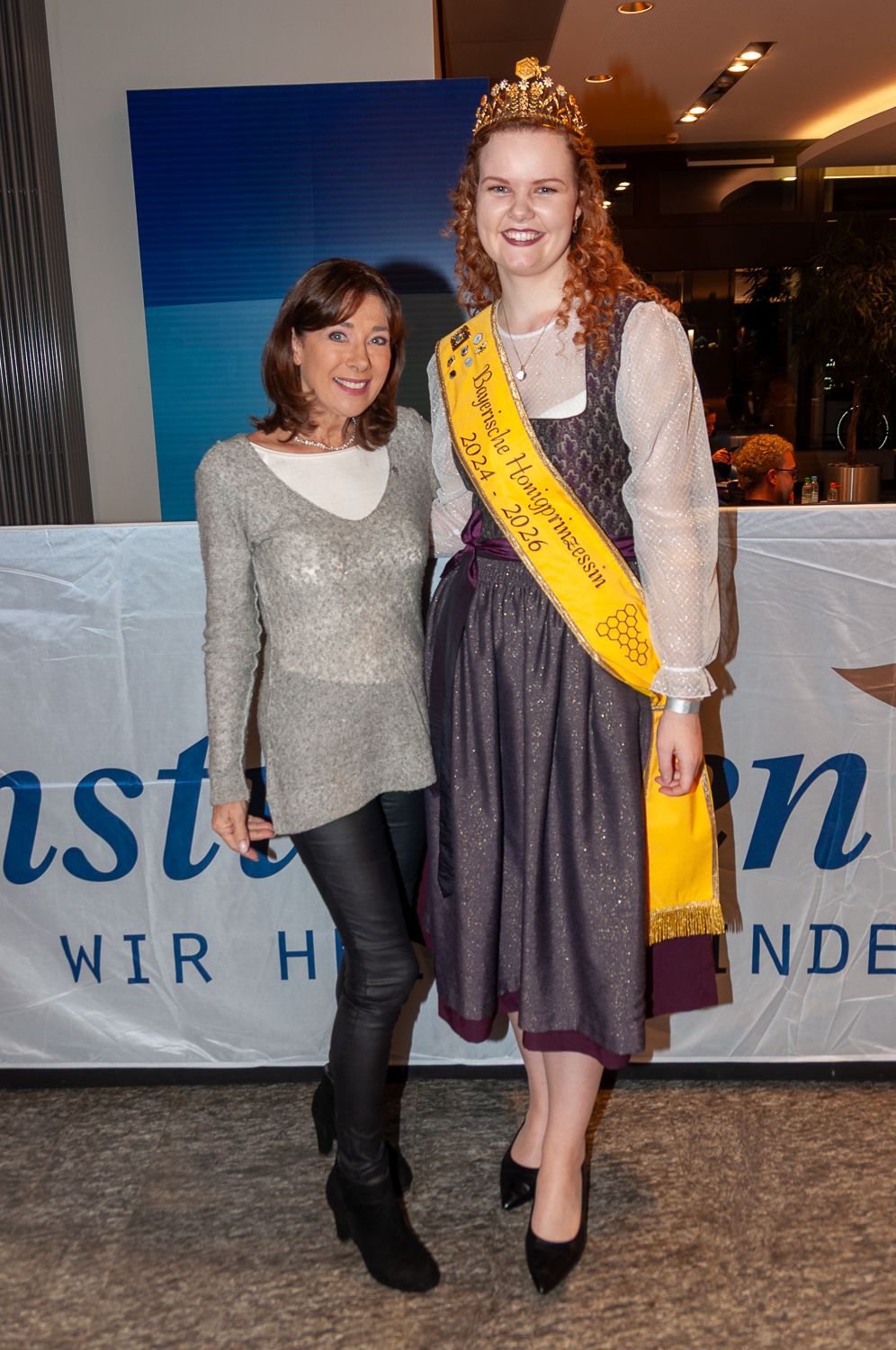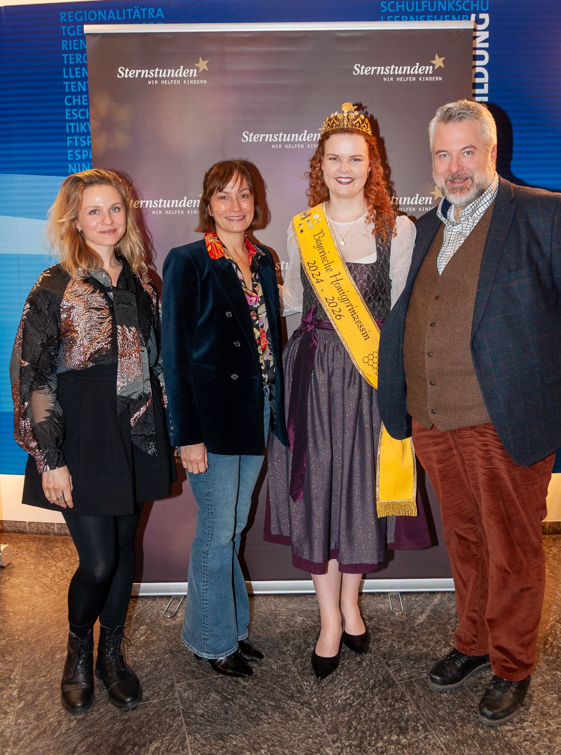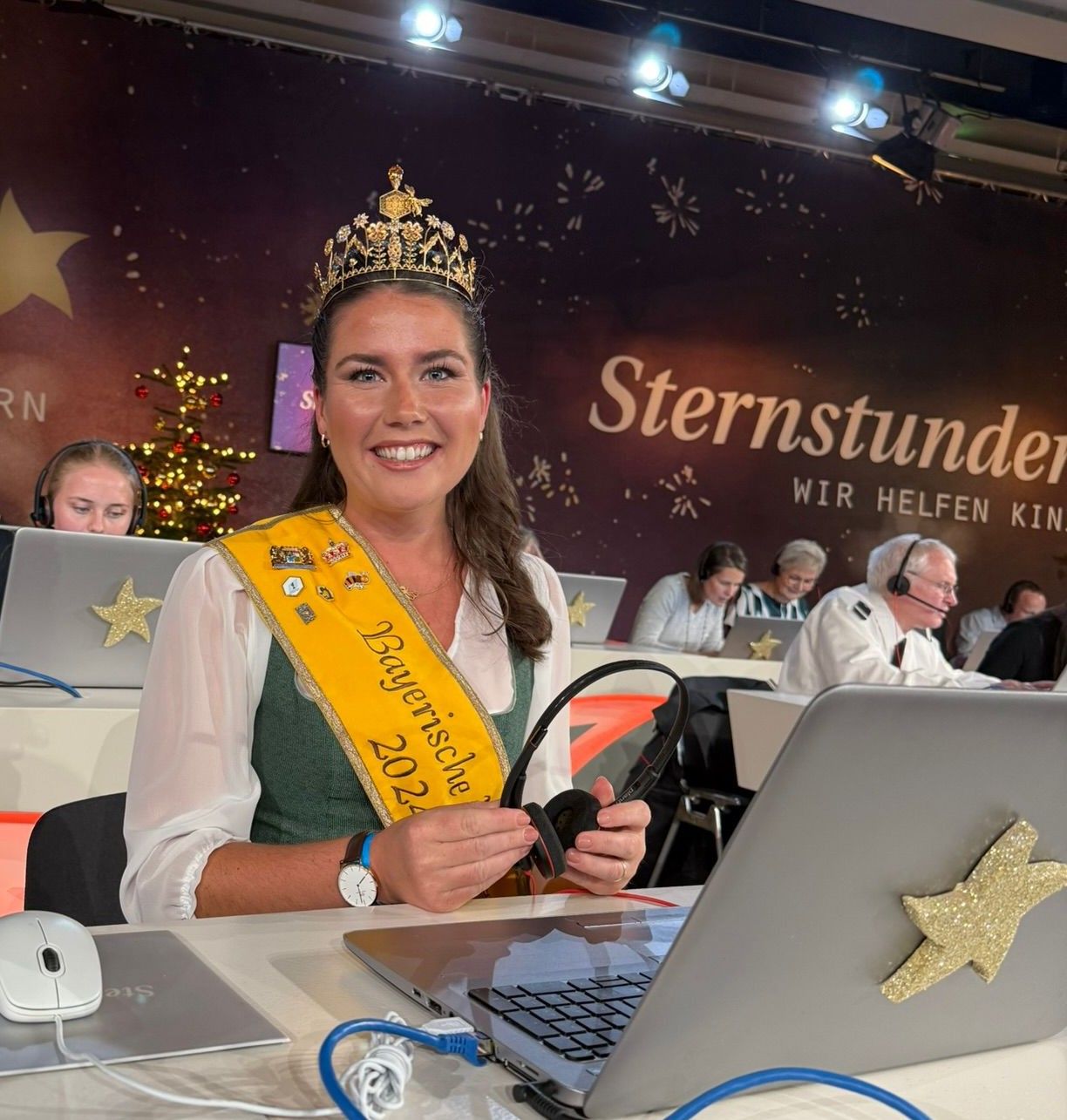 Im Dezember fand wieder der traditionelle Sternstundentag des Bayerischen Rundfunks statt – auch in diesem Jahr durften die Bayerischen Honighoheiten Elena Eberl und Anja Bürzer wieder am Spendentelefon mithelfen und die Benefizaktion des gemeinnützigen Vereins Sternstunden e. V. zugunsten kranker, behinderter und in Not geratener Kinder am Spendentelefon unterstützen. Die Bayerische Honigkönigin Elena I. hatte die besondere Gelegenheit, am diesjährigen Sternstundentag in der Spendenzentrale in Nürnberg mitzuwirken, während die Bayerische Honigprinzessin Anja in der Spendenzentrale in München die Anrufe der Spender entgegennahm. Im Rahmen des Sternstundentags saßen Ehrenamtliche, Prominente und Mitarbeitende des Bayerischen Rundfunks in den Spendenzentralen in München und Nürnberg, um Anrufe von Spenderinnen und Spendern entgegenzunehmen und über die Arbeit von Sternstunden zu informieren. Auch Elena I. war Teil dieses Teams und nahm über das Telefon Spenden für den guten Zweck entgegen. Die Teilnahme am Sternstundentag war für Elena I. eine wertvolle Erfahrung: Sie konnte die wichtige Arbeit von Sternstunden hautnah miterleben und aktiv dazu beitragen, die Aktion zu unterstützen. Zahlreiche Prominente wie die Schauspieler Dieter Fischer (Rosenheim Cops), Erol Sander und die Dahoam-is-Dahoam-Schauspieler um Philipp Schneider, oder die Moderatoren Sabine Sauer und Willi Weitzel, saßen auch in München zusammen mit der Bayerischen Honigprinzessin Anja am Spendentelefon und freuten sich über die großen und kleinen Beträge für die Benefizaktion. Anja freute sich, zusammen mit den Bayerischen Milchhoheiten auch einen Besuch im Bayern1-Hörfunkstudio zu erleben, zieht doch auch Bayern 1 in Kürze vom Münchner Funkhaus nach Freimann. Während ihres Einsatzes in der Spendenzentrale führten Elena I. und Anja zahlreiche Gespräche mit Menschen, die sich mit ihrer Spende direkt für hilfsbedürftige Kinder einsetzen wollten.