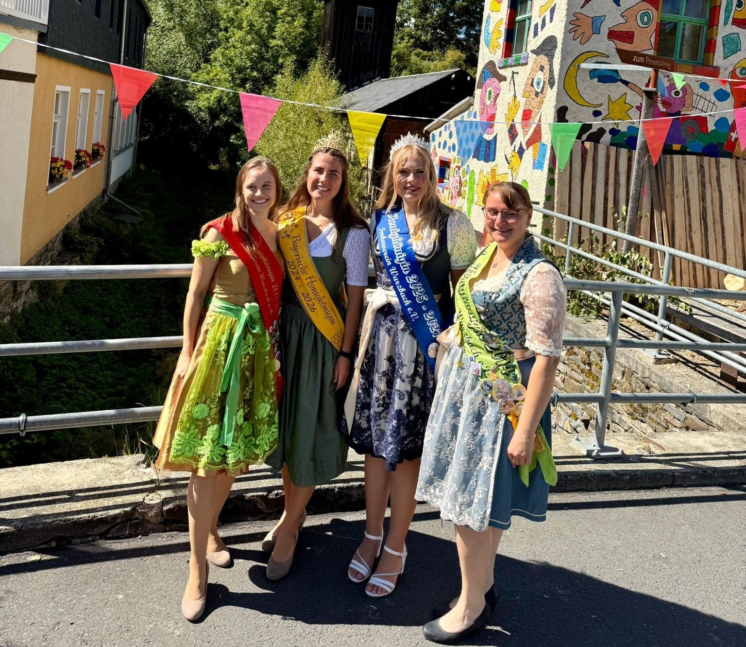 Ein festlicher Höhepunkt führte die Bayerische Honigkönigin Elena I. Ende August über die bayerischen Landesgrenzen hinaus bis nach Thüringen. Anlass war das 775-jährige Stadtjubiläum in Wurzbach, bei dem zugleich die 4. Honigkönigin des Imkervereins Wurzbach, Laura I., feierlich in ihr Amt eingeführt wurde. Gemeinsam mit zahlreichen weiteren Hoheiten aus nah und fern nahm Elena I. an den Feierlichkeiten teil und nutzte die Gelegenheit, viele Kontakte über die Regionen hinweg zu knüpfen. Der Tag war geprägt von herzlichen Begegnungen, festlicher Atmosphäre und großem Interesse der Bevölkerung an der Imkerei. Die neue Honigkönigin Laura I. wurde mit viel Applaus in ihr Amt eingeführt – ein starkes Zeichen für die Wertschätzung der Imkerei im Frankenwald. Für die Besucher bot sich zudem die Möglichkeit, die Hoheiten persönlich kennenzulernen, Autogramme zu sammeln und sich über die Welt der Bienen auszutauschen. „Es ist etwas Besonderes, die Imkerei nicht nur in Bayern, sondern auch über die Landesgrenzen hinaus vertreten zu dürfen. Solche Begegnungen zeigen, wie vielfältig und lebendig die Imkertradition in ganz Deutschland ist“, so Elena I.