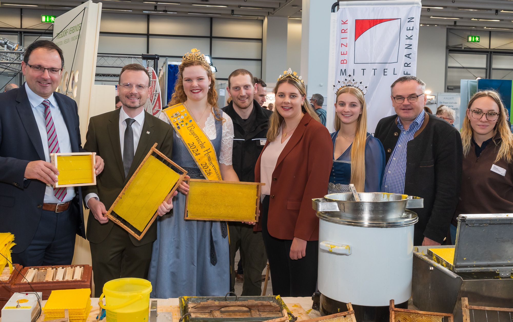 Die größte Verbrauchermesse Süddeutschlands, die Consumenta, wurde in Nürnberg durch den Bayerischen Staatssekretär für Finanzen und Heimat, Martin Schöffel, im Beisein weiterer Ehrengäste eröffnet. 1019 Aussteller präsentierten Angebote zu Genuss, Gesundheit, Bauen und Wohnen, sowie Technik, Mobilität und Spiele – damit erreichte die Messe wieder das vor-Corona-Niveau. Als Ehrengast auf der Eröffnungsfeier und dem anschließenden Rundgang war auch die Bayerische Honigprinzessin Anja Bürzer dabei. Verschiedene Stände wurden beim Eröffnungsrundgang besucht, darunter auch der Stand des Bezirks Mittelfranken, wo die Landwirtschaftlichen Lehranstalten Triesdorf die Imkerei durch Imkermeister Tobias Nett und Anne Schellartz, Auszubildende zur Tierwirtin (Fachrichtung Imkerei), präsentierten.