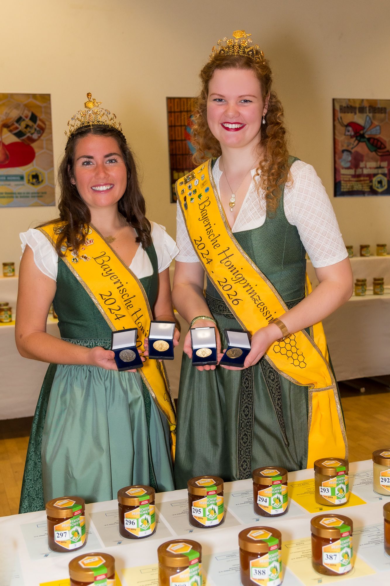 Zum traditionellen Bayerischen Honigfest im Kurhaus Bischofsgrün waren in diesem Jahr die Bayerische Honigkönigin Elena I. und die Bayerische Honigprinzessin Anja zu Gast, um erneut die besten Honige Bayerns zu ehren und den Imkerinnen und Imkern zu gratulieren. Bereits früh am Morgen nutzten die beiden Hoheiten die Gelegenheit, gemeinsam mit den Preisträgern Fotos vor den prämierten Honigen zu machen. Im Anschluss begrüßten sie die Gäste bei der feierlichen Eröffnung und hielten ein gemeinsames Grußwort, in dem sie die herausragende Arbeit der Imkerinnen und Imker würdigten und die Bedeutung regionaler Honigproduktion betonten. Im Mittelpunkt des Tages standen die Ergebnisse des Honigwettbewerbs 2025: Rund 300 Medaillen wurden an Imkerinnen und Imker vergeben – von Bronze über Silber und Gold bis hin zu den besten Honigen Bayerns. Elena I. und Anja überreichten die Medaillen persönlich und standen anschließend für Fotos mit den glücklichen Preisträgern zur Verfügung. „Es ist immer wieder beeindruckend zu sehen, wie viel Leidenschaft und Fachwissen in jedem Glas Honig steckt. Die Vielfalt der Aromen und die Qualität der bayerischen Honige machen deutlich: Unsere Bienen leisten Unglaubliches – und die Imkerinnen und Imker tun alles, damit dies weiter gelingt“, so Elena I. im Gespräch.