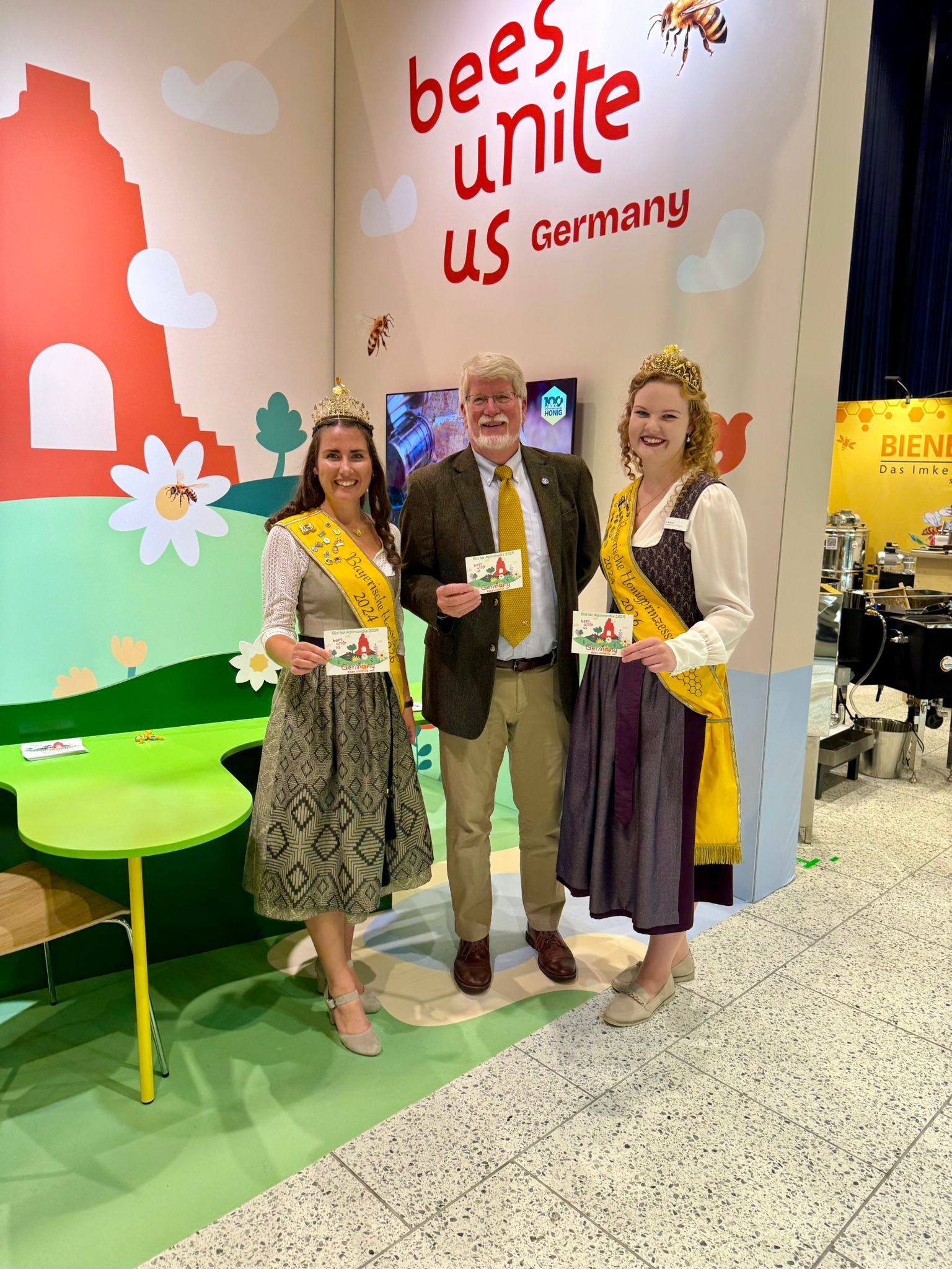 Ein zentrales Ziel des deutschen Teams war es, die Austragung des Weltimkerkongresses nach Deutschland zu holen – ein Vorhaben, das erfolgreich umgesetzt werden konnte: Im Jahr 2029 wird die Apimondia in Leipzig stattfinden! Dieser Erfolg gilt als wichtiger Meilenstein für die deutsche Imkerschaft und als große Chance, das Thema Bienen und Imkerei noch stärker in die internationale Öffentlichkeit zu tragen. Elena I. und Anja erhielten von den Organisatoren und dem Deutschen Imkerbund viel Anerkennung für ihren Einsatz, ihre Ausstrahlung und ihre Kompetenz. Mit ihrer Präsenz in Kopenhagen setzten sie ein starkes Zeichen dafür, wie sehr die bayerische Imkerei auch über die Landes- und Bundesgrenzen hinaus geschätzt wird.