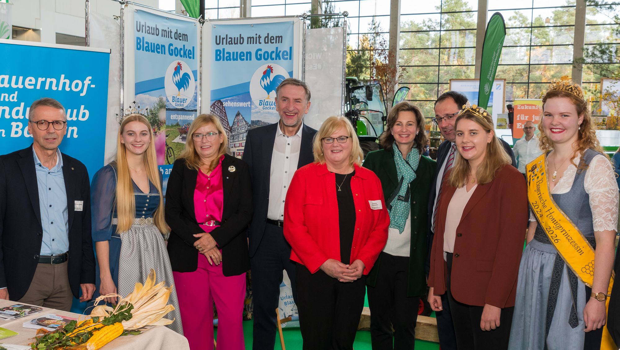 Die zur Eröffnung der RegioAgrar anwesenden Gäste am Stand des Bayerischen Bauernverbandes: hintere Reihe, v.r.: BBV-Präsident Günther Felßner, Bayerische Honigkönigin Elena Eberl, Regierungspräsidentin Barbara Schretter, BBV-Bezirkspräsident Stephan Bissinger, Bezirksbäuerin Christine Ade, Bayerische Weizenkönigin Andrea Necker. Vordere Reihe, v.r.: Bayerische Milchprinzessin Verena Wagner, Schrobenhausener Spargelkönigin Elisabeth Schwarzbauer, Hallertauer Vize-Hopfenkönigin Anna Fischer und die Deutsche Zuckerrübenkönigin Ingrid Stiegler.