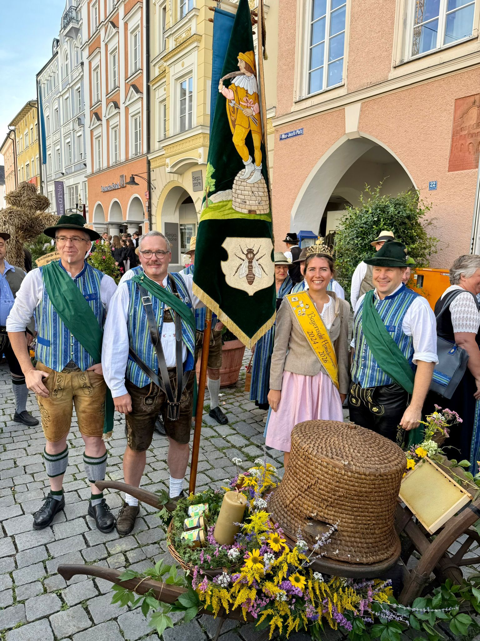 Im Juni nahm Bayerische Honigkönigin Elena I. am 867. Münchner Stadtgeburtstag teil – einem traditionsreichen Fest im Herzen der Landeshauptstadt. Gemeinsam mit weiteren bayerischen Produkthoheiten war sie Teil des offiziellen Programms und vertrat die Imkerei aus Bayern. Nach der feierlichen Eröffnung auf der Bühne am Marienplatz folgten mehrere Präsentationszeiten auf dem roten Teppich. Dabei ergaben sich viele Gelegenheiten für Gespräche mit Besucherinnen und Besuchern, die sich über die Bedeutung der heimischen Bienen informierten. Eine Autogrammstunde sowie zahlreiche Fotomöglichkeiten rundeten den Auftritt ab. Auch ein gemeinsames Fotoshooting mit den weiteren bayerischen Königinnen fand statt und unterstrich die Vielfalt regionaler Produkte in Bayern. „Es ist schön zu sehen, wie groß das Interesse am Thema Bienen auch im städtischen Raum ist“, so Elena I. über ihren Auftritt in München. Der Stadtgeburtstag bot eine gute Gelegenheit, die Imkerei einer breiten Öffentlichkeit näherzubringen – eingebettet in ein Fest voller Begegnungen und regionaler Vielfalt.