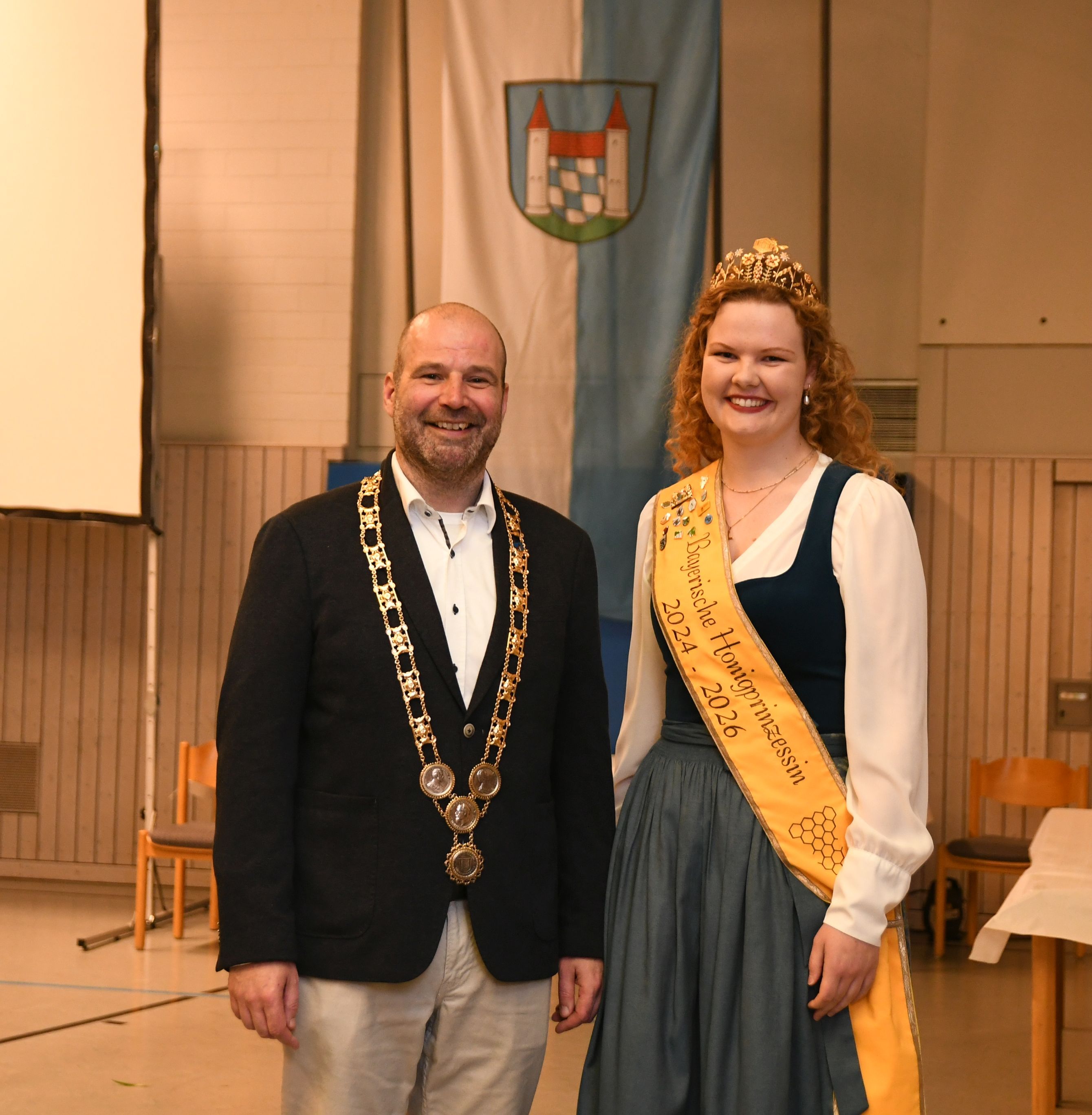 Der 1. Bürgermeister Dieter Müller (l.) zusammen mit der Bayerischen Honigprinzessin Anja Bürzer.