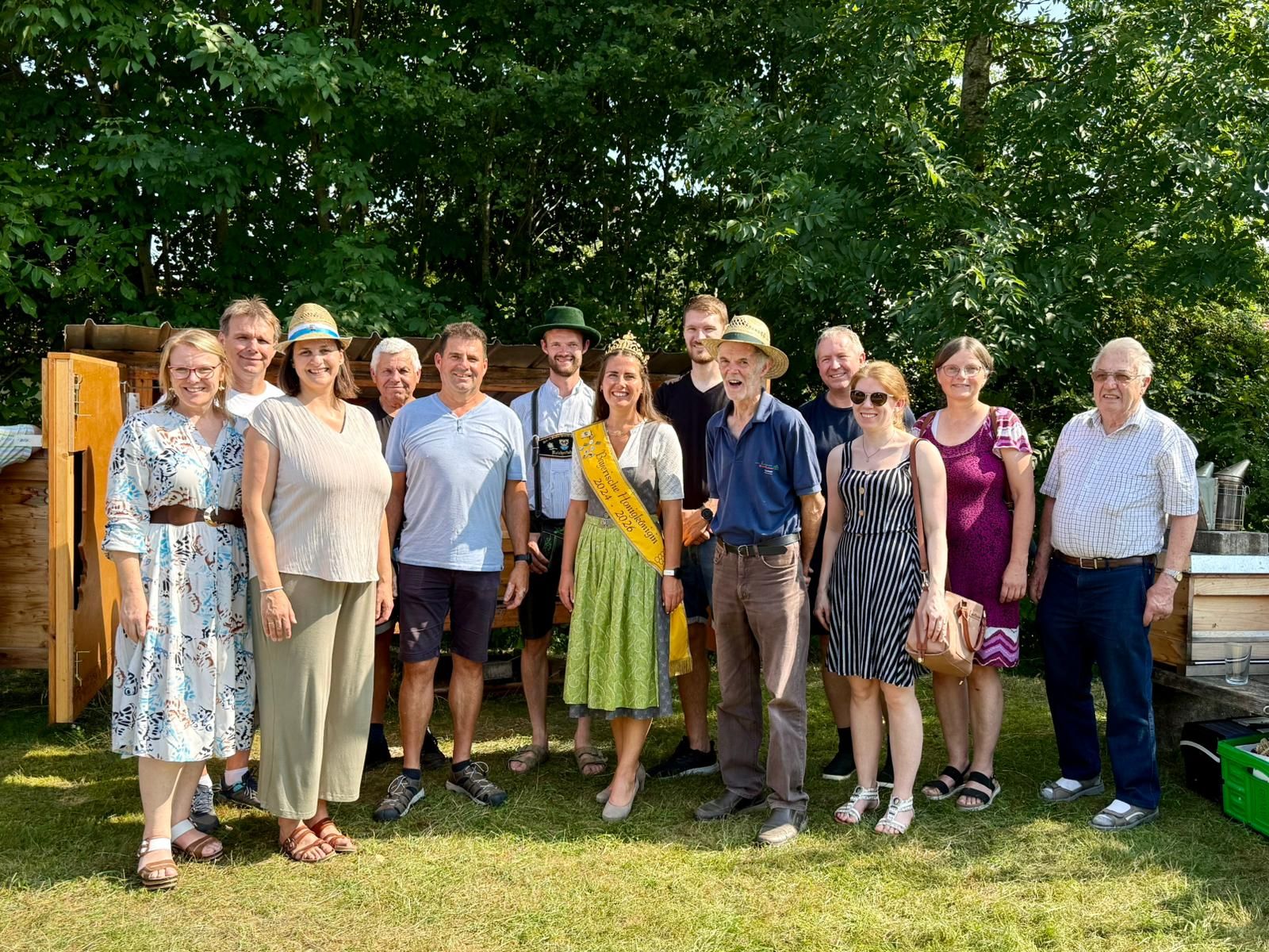 Mitte August fand die traditionelle Kreisstandschau des Kreisverbandes Bayerischer Imker Mühldorf-Altötting statt. In diesem Jahr war der Imkerverein Aschau am Inn Gastgeber und hieß die zahlreichen Imkerinnen und Imker sowie interessierte Besucher herzlich willkommen. Im Rahmen der Veranstaltung konnten zwei Standorte besichtigt werden, an denen die Teilnehmenden interessante Einblicke in die imkerliche Praxis erhielten. Der Austausch über Bienengesundheit, Haltung und aktuelle Themen der Imkerei stand dabei ebenso im Mittelpunkt wie das gesellige Miteinander. Als Bayerische Honigkönigin war Elena I. ebenfalls vor Ort und nutzte die Gelegenheit, viele Gespräche zu führen und den Kontakt zu den Imkervereinen der Region zu pflegen. „Es ist schön zu sehen, wie groß das Engagement in den Vereinen ist und wie viel Herzblut in die Arbeit mit den Bienen gesteckt wird“, betonte sie. Im Anschluss an die Besichtigungen fand ein gemütliches Beisammensein auf dem Dorffest in Aschau am Inn statt. Damit klang der Tag in geselliger Atmosphäre aus und bot allen Beteiligten die Möglichkeit, die gewonnenen Eindrücke in entspannter Runde nachklingen zu lassen.