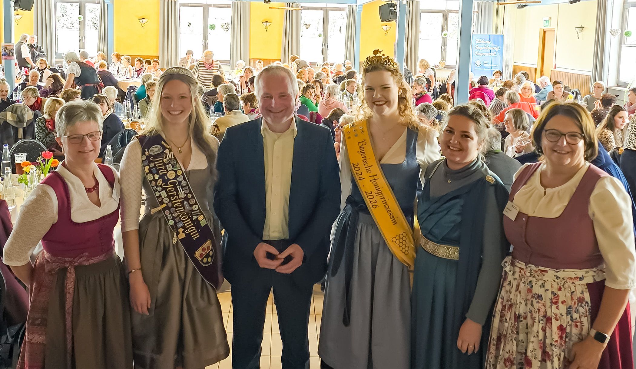 Ende Januar waren die Bayerische Honigkönigin Elena I. und die Bayerische Honigprinzessin Anja zu Gast beim Neujahrsempfang des Bayerischen Staatsministeriums für Umwelt und Verbraucherschutz in der Münchner Residenz. Im historischen Kaisersaal trafen sie auf Vertreterinnen und Vertreter aus Politik, Verbänden und Gesellschaft – ein feierlicher Rahmen für den Austausch zum Jahresbeginn. Ein besonderes Highlight war das persönliche Meet & Greet mit Umweltminister Thorsten Glauber. Begleitet wurden die Bayerischen Honighoheiten von den Verbandsvorsitzenden Stefan Spiegl und Franz Vollmaier. „Es ist immer wieder schön, zu Beginn des Jahres Menschen aus Politik und Verbänden zu treffen und über die Bedeutung der Bienen und unserer Arbeit zu sprechen“, betonte Elena I. „Gerade der Austausch auf Augenhöhe zeigt, wie wichtig Umweltschutz und Imkerei in Bayern sind.“ Honigprinzessin Anja ergänzte: „Der Empfang ist eine wunderbare Gelegenheit, die Imkerei zu präsentieren und gleichzeitig die wertvolle Arbeit des Ministeriums für Natur und Nachhaltigkeit zu würdigen.“ Viele der Gäste freuten sich, die Bayerischen Honighoheiten wiederzutreffen, darunter beispielsweise die Abgeordneten Gabi Schmidt oder Dr. Martin Brunnhuber. Der Neujahrsempfang verband festliche Atmosphäre mit wertvollen Begegnungen und bot den Bayerischen Honighoheiten die Möglichkeit, ihre Themen in den Dialog mit Entscheidungsträgern einzubringen.