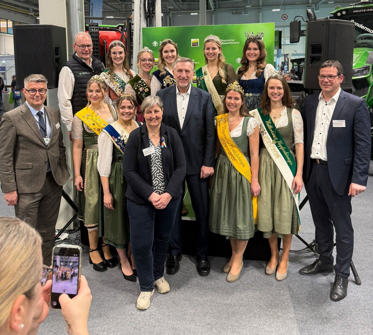 Die Bezirksbäuerinnen des BBV besuchten gemeinsam die Bayernhalle und freuten sich über den Austausch mit den Bayerischen Honighoheiten Elena I. und Anja (v.l.): Claudia Erndl (Niederbayern), stv. BBV-Generalsekretärin Dr. Andrea Fuß, Landesbäuerin Christine Singer, Elena I., Anja, 1. Stellv. Landesbäuerin Christine Reitelshöfer (Mittelfranken), Beate Opel (Oberfranken), Maria Hoßmann (Unterfranken), Irmgard Posch (Oberbayern), 2. Stellv. Landesbäuerin Christiane Ade (Schwaben).