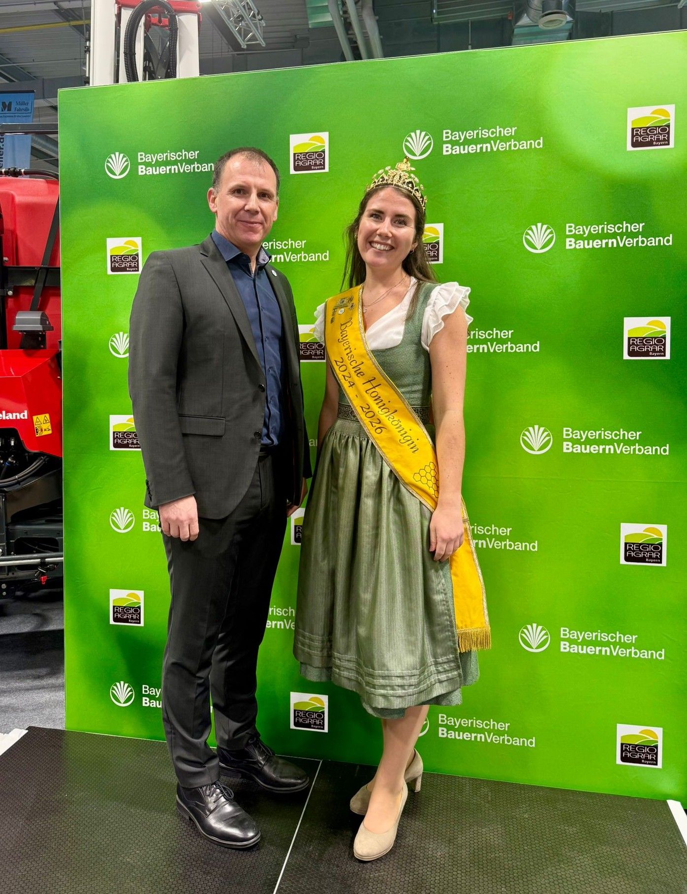 Die Bayerische Honigkönigin Elena Eberl war zur feierlichen Eröffnung der RegioAgrar Messe in Augsburg eingeladen. Mit ihrer Teilnahme vertrat sie die Bedeutung der heimischen Imkerei sowie die hohe Qualität regionaler Honigprodukte. Begleitet wurde sie bei der Veranstaltung von LVBI-Präsident Stefan Spiegl. Die offizielle Eröffnungsrede hielt Günther Felßner, Präsident des Bayerischen Bauernverbandes. In seiner Ansprache betonte er die große Bedeutung der Landwirtschaft im Zusammenspiel mit Nachhaltigkeit, Umwelt- und Artenschutz. Mit über 250 Ausstellern zählt die RegioAgrar zu den wichtigsten Fachmessen für die Agrarwirtschaft in Süddeutschland und bietet eine zentrale Plattform für Information und fachlichen Austausch. Im Rahmen der Veranstaltung ergaben sich zahlreiche Gespräche mit Landwirten, Imkern und Fachbesuchern. Dabei standen insbesondere die aktuellen Herausforderungen der Imkerei, nachhaltige Bienenhaltung sowie die wachsende Nachfrage nach regionalen Produkten im Fokus. Das große Interesse an bienenfreundlicher Landwirtschaft unterstrich die Relevanz einer engen Zusammenarbeit zwischen Landwirtschaft und Imkerei. Die Bayerische Honigkönigin zeigte sich erfreut über die Einladung und die vielen wertvollen Begegnungen. Die RegioAgrar erwies sich einmal mehr als wichtige Plattform, um den Dialog innerhalb der Agrarbranche zu fördern und das Bewusstsein für die Bedeutung von Bienen und regionaler Honigerzeugung weiter zu stärken.