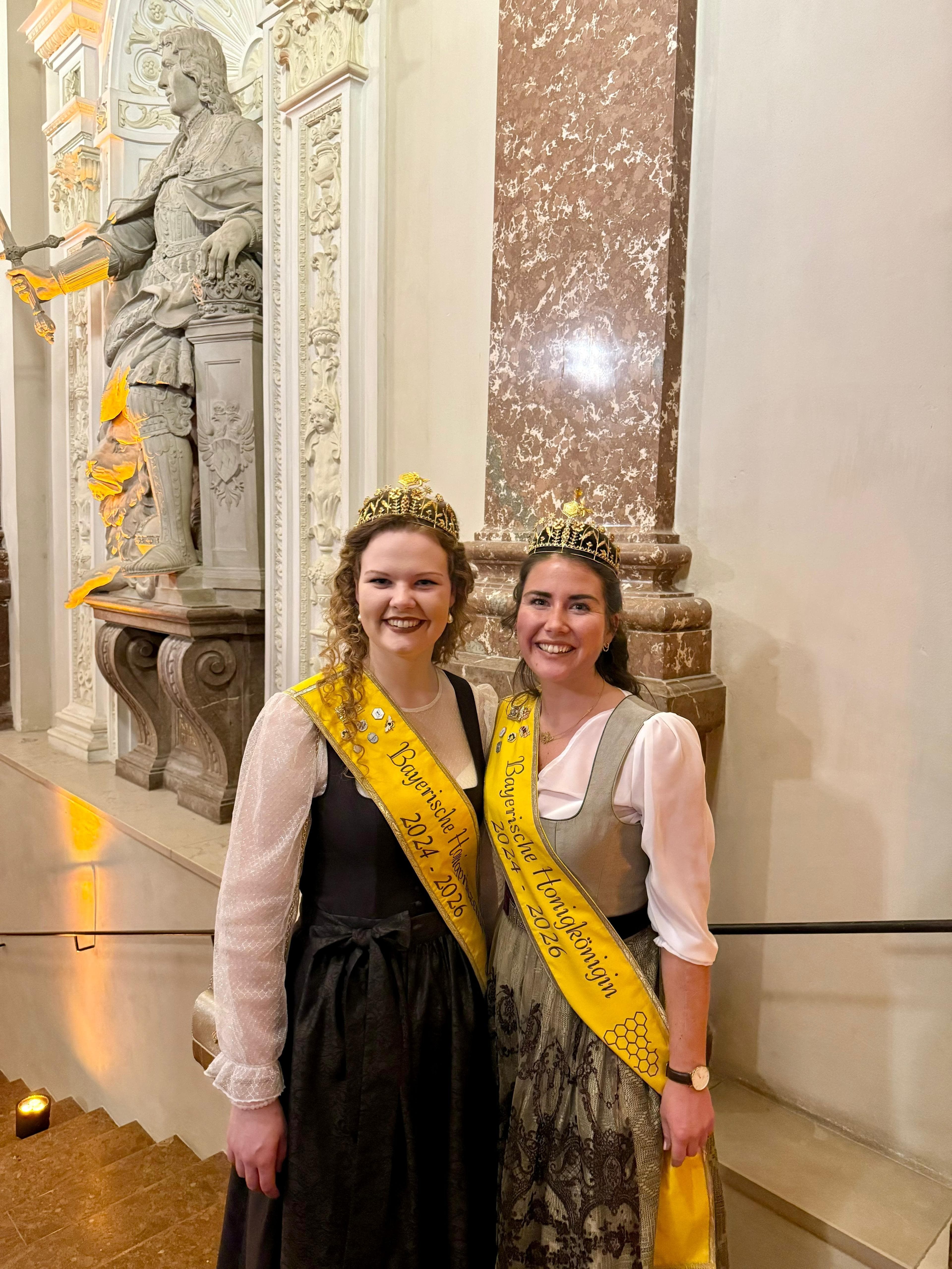 Zum Start ins neue Jahr lud Ministerpräsident Dr. Markus Söder zum Neujahrsempfang in die Prunkräume der Münchner Residenz - und rund 2000 Gäste aus Politik und anderen Funktionen folgten seiner Einladung, darunter die Bayerische Honigkönigin Elena Eberl und die Bayerische Honigprinzessin Anja Bürzer. Das große Defilée zu Beginn entfiel in diesem Jahr, da der Ministerpräsident erst kürzlich an der Hüfte operiert wurde. Gleich zu Beginn seiner Rede bat der Ministerpräsident dafür um Verständnis mit der Metapher "Irgendwie kommt das neue Jahr so ziemlich mit Krücken daher" und fuhr fort: "Der Neujahrsempfang ist das vielleicht größte gesellschaftliche Ereignis zum Jahresanfang. mit Gästen aus allen Landesteilen, aus allen sozialen Schichten: Vertreter aus Wirtschaft und Wissenschaft, aus Kirche und Kultur, aus Sport und Ehrenamt. Bei uns gib es Promis zuhauf, aber ganz viele normale Menschen, die durch ihr ehrenamtliches Engagement ihren Beitrag dazu leisten, daß unser Land lebenswert ist". Der Bayerische Ministerpräsident ging in seiner Ansprache auch auf die Herausforderungen des kommenden Jahres ein, und schloß die sie mit den besten Wünschen: "Ich wünsche Ihnen ein gutes neues Jahr, ich wünsche Ihnen heute abend einen schönen Abend, viele, viele Gespräche - genießen Sie es." Dieser Aufforderung folgten auch die Bayerischen Honighoheiten, und kamen ins Gespräch über ihr Amt und die Bayerische Imkerei, unter anderem mit zahlreichen Politikern, Verbandsfunktionären oder Kulturschaffenden.
