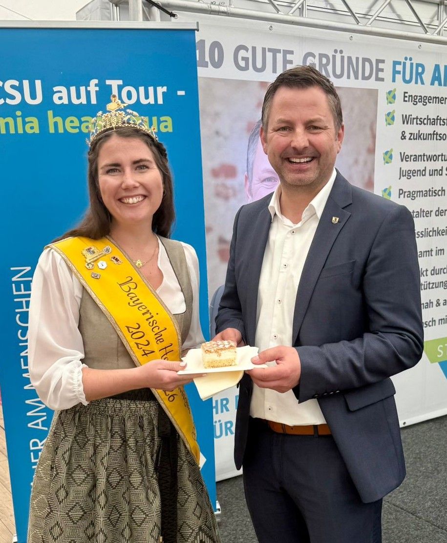 Am Stand der Metropolregion Nürnberg schaute auch Bundeslandwirtschaftsminister Alois Rainer vorbei und stellte sich mit Elena I. zum Foto.